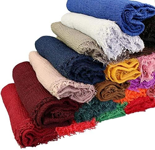 XRDSS Summer Cotton Blend Crinkle Vintage Soft Scarf with Fringed Edges 35″ × 70″